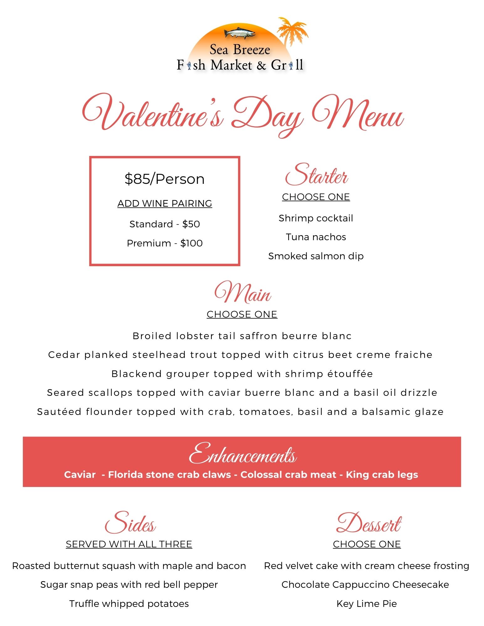 We will have a Prix Fixe dinner February 14th in celebration of Valentine’s Day. View the menu and make a reservation below!
